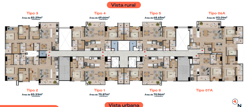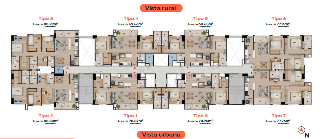 Áreas desde 68.65m2 hasta 113.01m2, con 2 o 3 habitaciones que se adaptarán a tu esencia y estilo de vida, 2 o 3 baños, salón comedor, cocina abierta, estudio, balcón, zona de ropas y parqueadero privado.