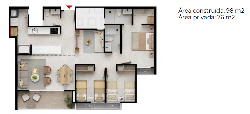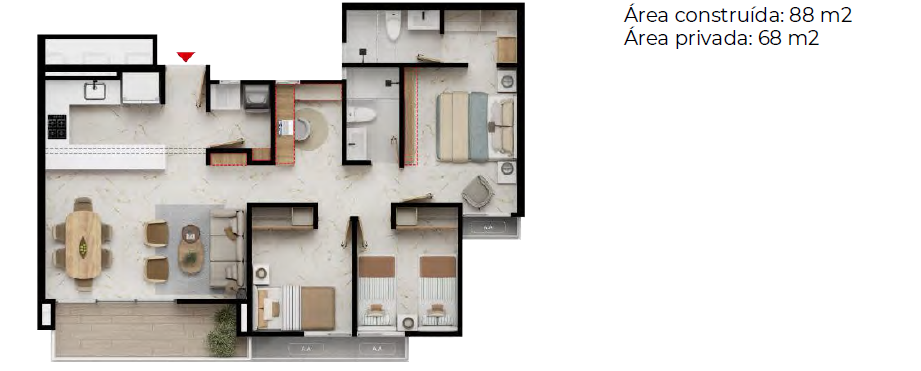 Lira dispone de apartamentos entre los 79 Mt2 hasta los 126 Mt2. Distribuidos de forma estratégica para ofrecer una habitación principal con vestier y baño privado, una o dos habitaciones auxiliares, baño social, sala-comedor con balcón, espacio para sala de televisión o estudio, cocina con barra americana y zona de ropas independiente